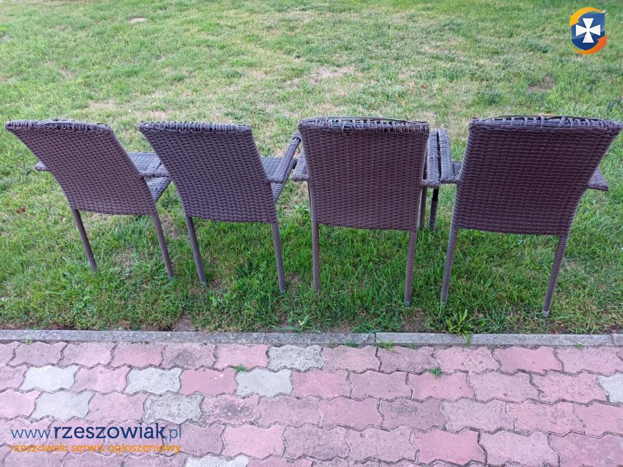 W krzesłach ratan gdzieniegdzie popękał na słońcu. Stelaż krzeseł jest w dobrym stanie nie jest uszkodzony.