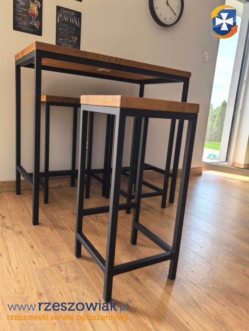 Stolik barowy, lite drewno dębowe, stelaż metal / kolor: dąb / czarny