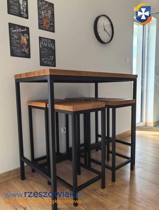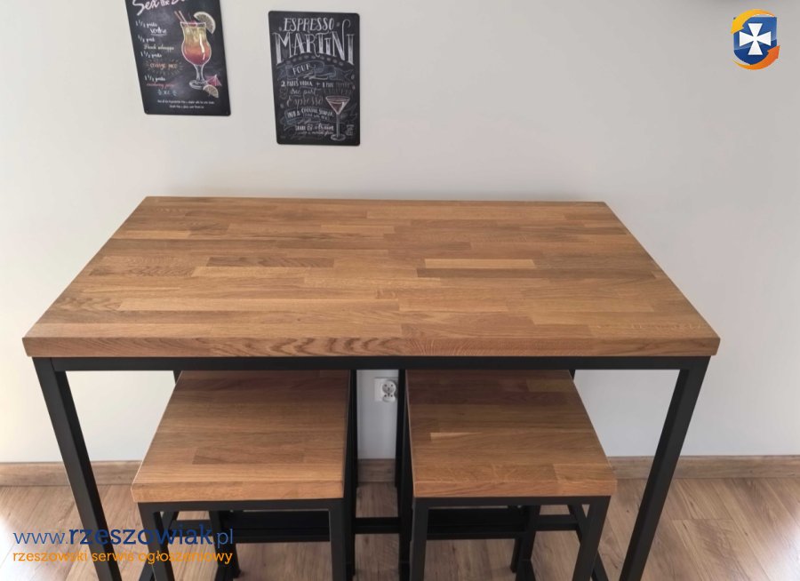 bar table, solid dąb drewno, rama metal / kolor: dąb / czarny