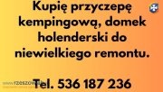 kupię Przyczepę kempingową, domek holenderski do niewielkiego remontu. Tel. 536 187 236