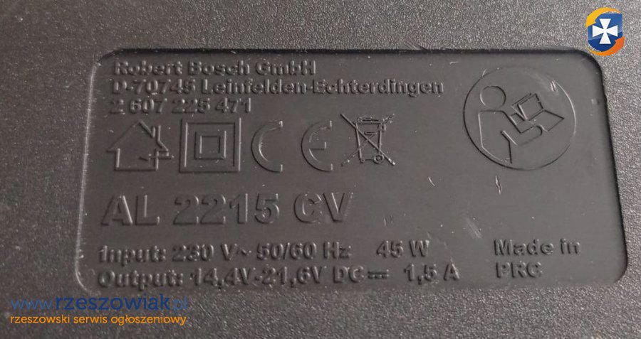 Ładowarka akumulatorów litowo-jonowych Bosch AL 2215 CV. Urządzenie jest używane, ale nadal w dobrym stanie technicznym. Może być przydatne do ładowania akumulatorów narzędzi Bosch lub innych kompatybilnych urządzeń.