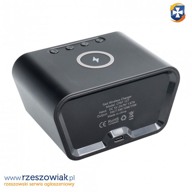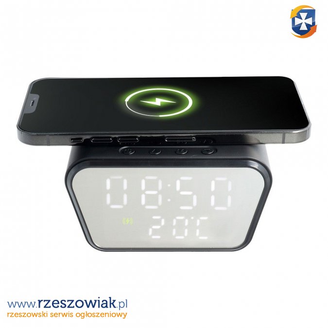 Ładowarka bezprzewodowa CFNZ01 z technologią Quick Charge, a także wbudowanym zegarkiem i termometrem. Pozwala na ładowanie indukcyjne smartfona.