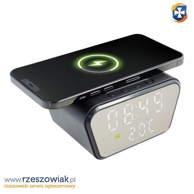 Ładowarka bezprzewodowa CFNZ01 z technologią Quick Charge, a także wbudowanym zegarkiem i termometrem. Pozwala na ładowanie indukcyjne smartfona.
