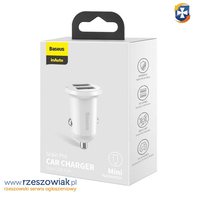 Ładowarka samochodowa Baseus Grain Pro 2x USB 4.8A (biała)