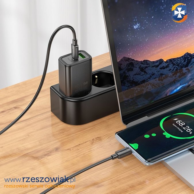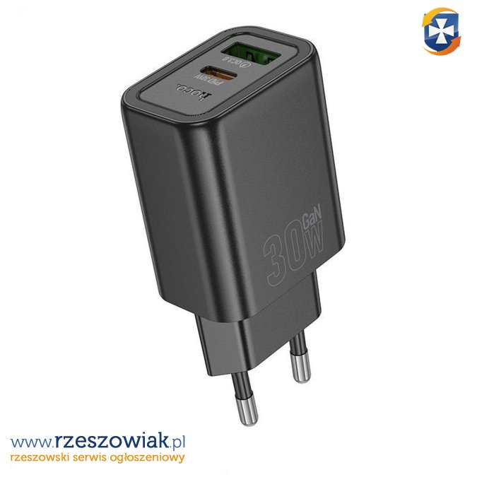 Ładowarka została wyposażona w podwójne wyjście: USB-C (30 W) i USB-A (18 W) pozwala ładować 2 urządzenia jednocześnie.