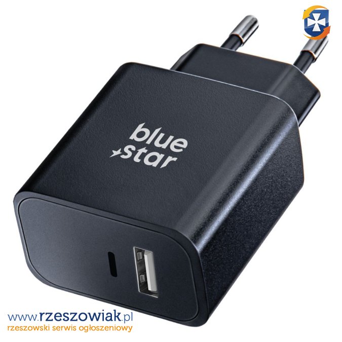 Ładowarka sieciowa z funkcją szybkiego ładowania PD, QC 4.0, AFC oraz gniazdami USB-C i USB-A, przeznaczona do najnowocześniejszych telefonów o zapotrzebowaniu na moc do 25W.
