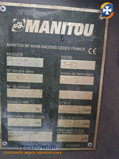 ładowarka teleskopowa Manitou 1440 typ budowlany udzwig 4,5t wysięg 14m mały przebieg sprzedaję jako uszkodzona silnik super na mrozie pali na dotyk , tylko hydraulika nie działa