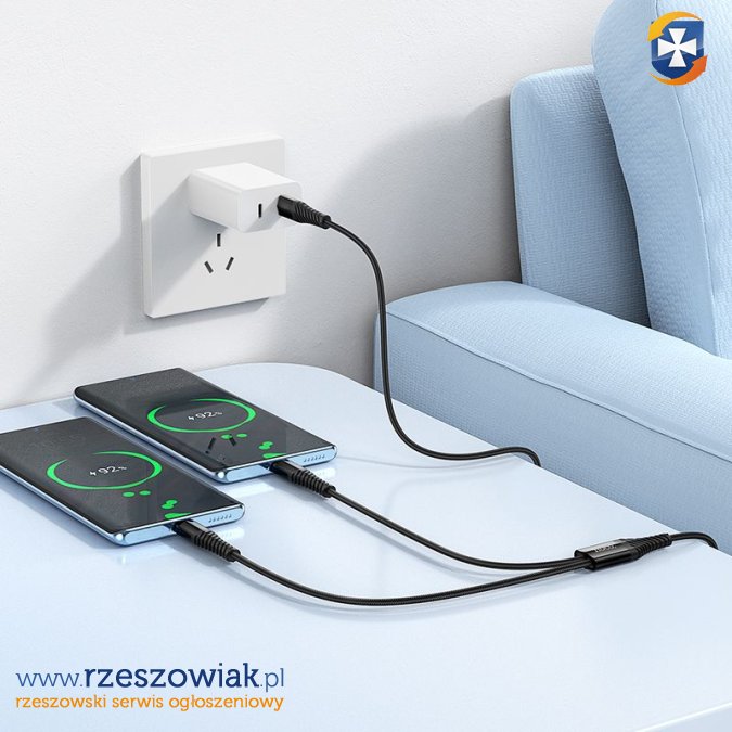 Ładuj błyskawicznie nawet duże urządzenia! Kabel nadaje się do zasilania wielu różnych urządzeń Ładowanie 2 urządze jednocześnie oznacza, że w krótkim czasie naładujesz baterię swojego smartfona czy też laptopa (lub innego urządzenia) do pełna.