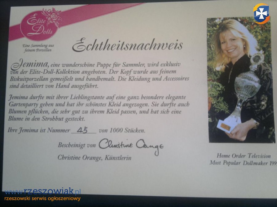 LALKA SYG. Z CERTFIKATEM 97 CM.KOLEKCJONERSKA