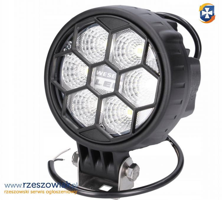 Lampa robocza LED reflektor WESEM 29W, 2500lm, Ř117x74mm, kąt rozsyłu światła 50°, przewód 0,5mb, plastikowa kratka ochronna.