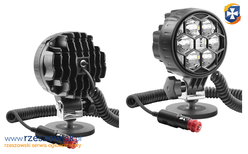 Lampa robocza LEDF fi117-4° 2500lm 12/24V+kratka,spir.8m,uchwyt neodym.,wtycz.do zapal.,wył