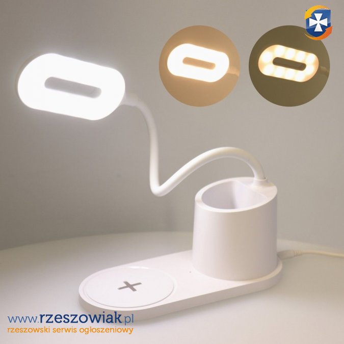 Lampka biurkowa LED z ładowarką bezprzewodową CFTD03. Oświetl swoje stanowisko podczas pracy przy biurku, a także naładuj indukcyjnie smartfona.