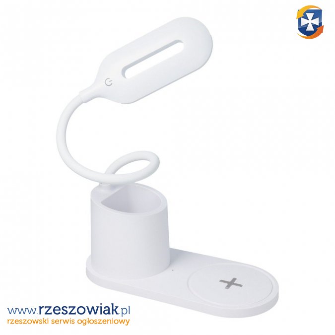 Lampka biurkowa LED z ładowarką bezprzewodową CFTD03. Oświetl swoje stanowisko podczas pracy przy biurku, a także naładuj indukcyjnie smartfona.