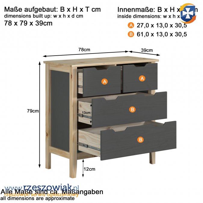 LATERA KOMODA 4 SZUFLADY SZARA 226886620