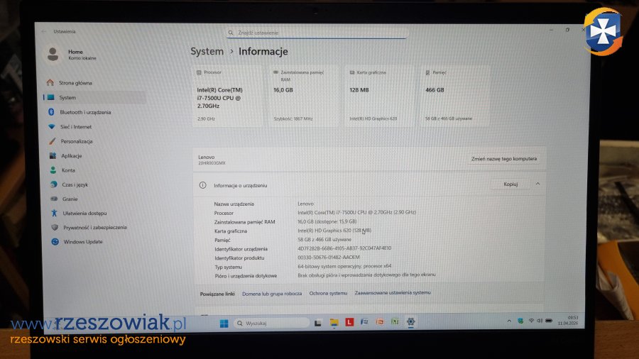 Procesor: Intel Core i7-7500u 4x2.70 GHz w trybie turbo 4x3.50 GHz