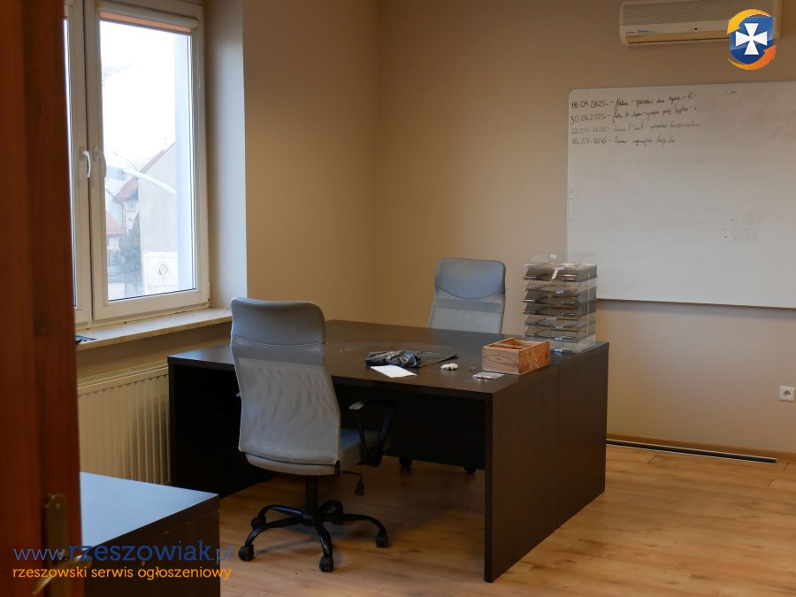 Lokal biurowy o powierzchni 46 m2, składający się dwóch pomieszczeń (28,0 m2 i 18,0 m2) w Rzeszowie ul. Zygmuntowska 9A położony na II piętrze. Każdy pokój posiada niezależne wyjście do klatki schodowej, a także oba pokoje połączone są komunikacyjnie drzwiami wewnętrznymi w obrębie wynajmowanego lokalu. Lokalizacja w ścisłym centrum miasta w rejonie intensywnego ruchu pieszego. W pobliżu sporo parkingów i miejsc płatnego parkowania (po 16.00 â nieodpłatnie)
