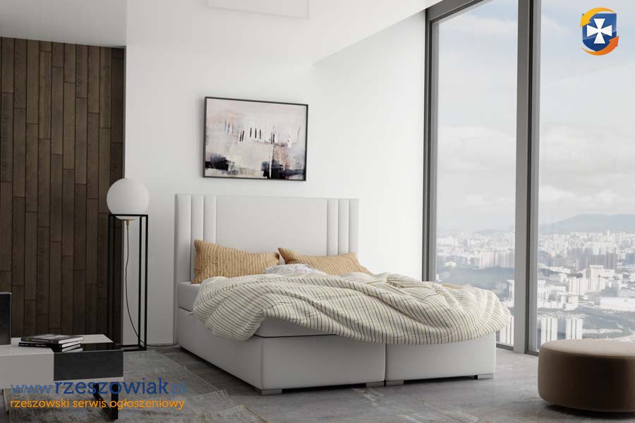 W standardzie - Dolna skrzynia łóżka pełni rolę pojemnika na pościel, do którego dostęp uzyskujemy unosząc materace do góry. Standardowy materac bazowy jest wykonywany ze sprężyn bonelowych oraz pianki tapicerskiej typu T-25. Na materacu bazowym umieszczono materac nawierzchniowy (Topper 5cm) wykonany z pianki tapicerskiej typu T-25.