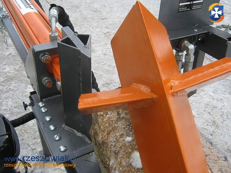 W standardzie łuparka posiada zaczep kulowy oraz klin łupiący na 4 części.