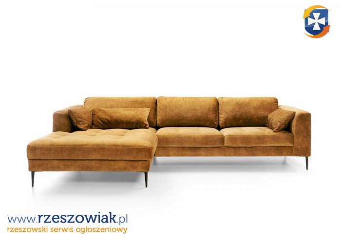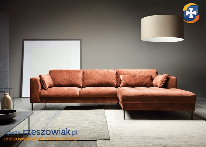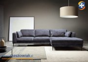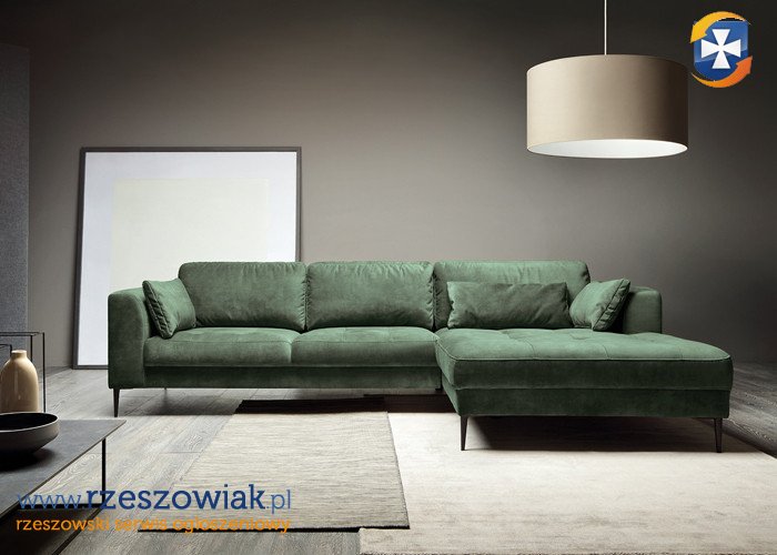 Bardzo wygodna sofa narożna, w pięknym nowoczesnym stylu. Wygląda lekko, dzięki smukłej czarnej aluminiowej nodze. Jest doskonale wykończona z każdej strony i może stać pośrodku pokoju.Mebel świetnie wygląda w welwetach. Dodatkowe poduszki lędźwiowe zwiększają komfort wypoczynku.Możesz zamówić recarmierę po prawej lub lewej stronie.