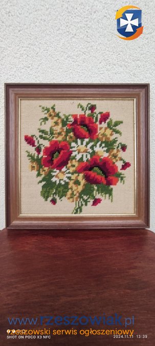 Mały obraz haftowany motywy kwiatowe wym.24 na24 cm