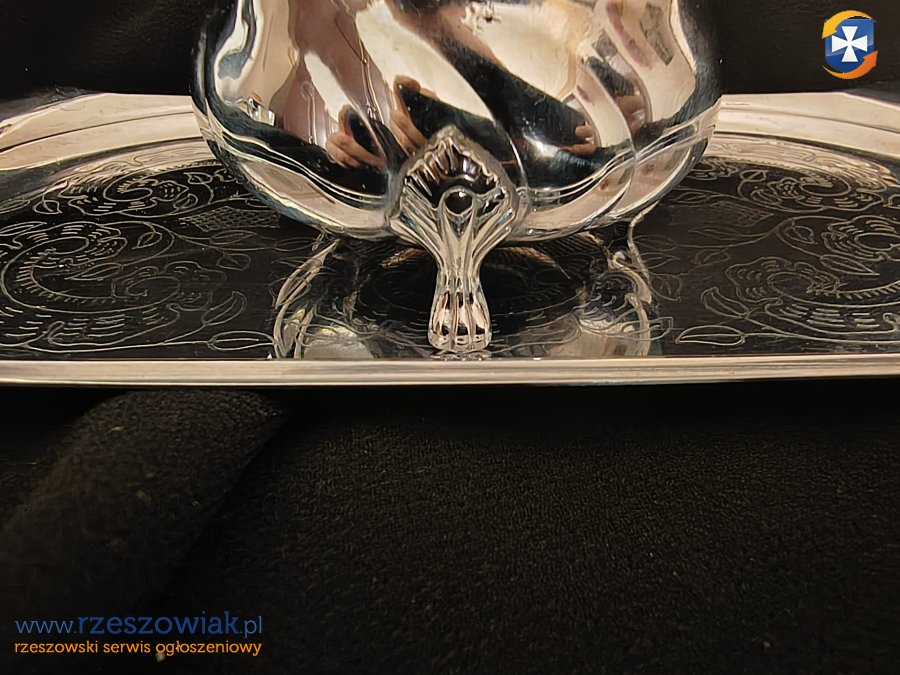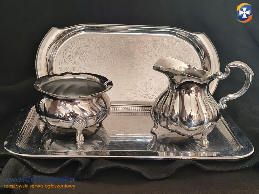 Mały zestaw kawowy wykonany z posrebrzanego metalu