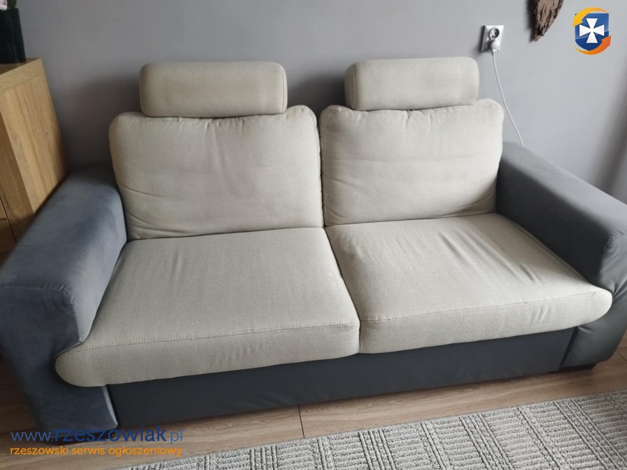 Tylko mała kanapa jest z funkcją spania, zagłówki 3 sztuki, zdejmowane - można przekładać lub zdjąć całkiem. Cena: 500 zł za całość.