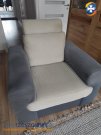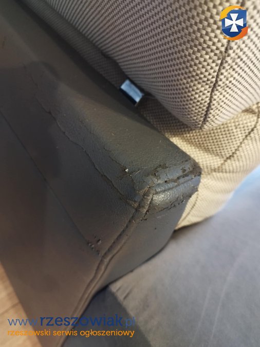 Mam do sprzedania używane dwie kanapy i fotel, stan jak na zdjęciach. Materiał na siedziskach trochę skulkowany, na boku fotela widoczne delikatne wypalenia. Obicia boków były wymieniane, pierwotny materiał to sztuczna skóra, materiał z tyłu mebli został bez zmian dlatego niestety trochę się łuszczy. Meble bardzo wygodne, w środku wszystko ok, nie są połamane. Nóżki ciemny brąz, drewniane.