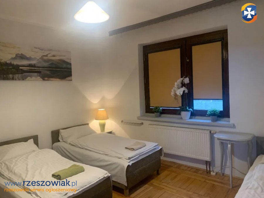 Mam do wynajęcia apartament w domu dwulokalowym o powierzchni ok. 80m2 w Nowej Wsi koło Rzeszowa. Nieruchomość przestronna, niezwykle funkcjonalna. W apartamencie znajdują się trzy duże w pełni umeblowane pokoje - w każdym telewizor i WiFi, duża kuchnia-salon i łazienka, łącznie 80m2 max dla 9 osób. Apartament wyposażony w sprzęty AGD i gospodarstwa domowego. Do dyspozycji Najemców budynki gospodarcze, miejsce do grillowania i inne atrakcje, parking na kilka samochodów. Posesja ogrodzona, co zapewnia dużą prywatność. Prezentowana nieruchomość znajduje się w świetnej lokalizacji przy centrum Spa Blue Diamond, szybki dojazd do każdej części Rzeszowa, 5 minut do portu lotniczego Jasionka, strefy ekonomicznej. Wystawiamy faktury Vat.