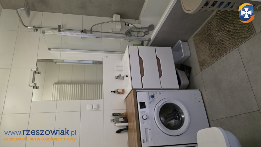 W mieszkaniu jest pralka, TV i duży balkon