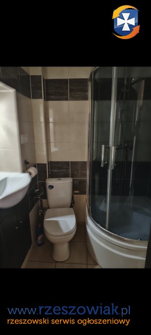 - w łazience: Kabina prysznicowa, umywalka z szafką, lustro z szafką, kompakt wc,