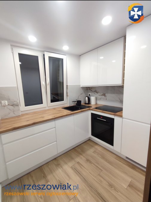 - Kuchnia: nowoczesna zabudowa, lodówka, zmywarka, piekarnik, płyta indukcyjna, pochłaniacz, podstawowe wyposażenie (naczynia, garnki, sztućce, patelnie itp.)