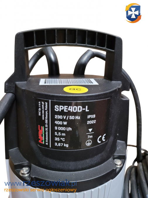 Pompa do brudnej wody NAC SPE40D-L przystosowana jest do pompowania wody w każdych warunkach.