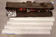 Zestaw składa się z: 4 aluminiowych prowadnic 110 cm, wózka z kółkiem tnącym Ă 22 mm EXTREME , 1 pary szczypiec łamacza, 3 przyssawek i wzmocnionej nylonowej torby transportowej.