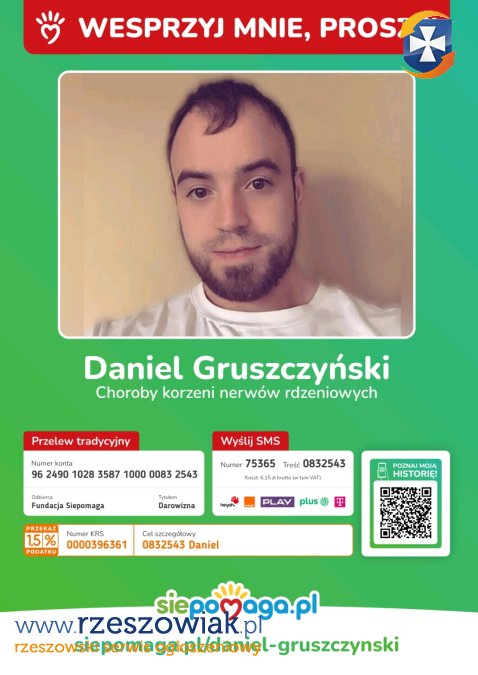 Mam na imię Daniel, pochodzę z pięknych, malowniczych Bieszczad â mojego ukochanego Sanoka. Jeszcze niedawno mogłem cieszyć się codziennością bez bólu. Niestety, od 2024 roku moje życie zmieniło się diametralnie...