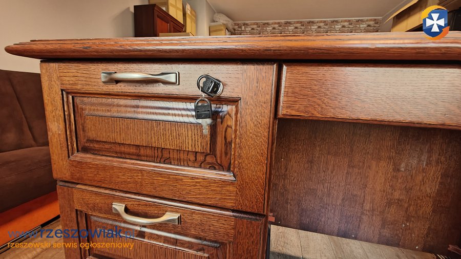 Mam na sprzedaż biurko drewna. Blat o wymiarach 75x175cm, wysokość 83cm. Biurko zrobione na zamówienie. 3 głębokie szuflady - jedna na kluczyk. Jedna płytka pod blatem. Szafka również na kluczyk.