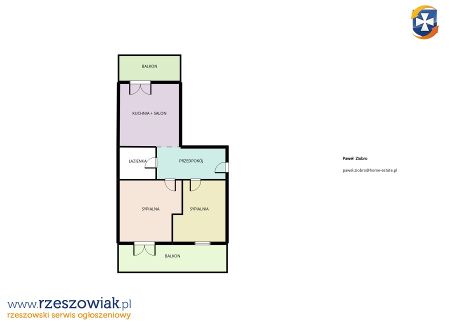 - Dwa balkony.