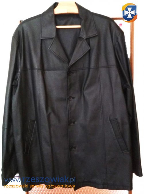 marynarka (kurtka, płaszcz) ze skóry ekologicznej, kolor czarny, męska, w BARDZO DOBRYM stanie, jak nowa, użyta tylko kilka razy, żadnych przetarć, materiał idealny, wymiary: długość rękawa od zewnętrznej strony (od ramienia): 68cm , plecy (z kołnierzem): 86cm , szerokość w ramionach na płasko: 55cm, szerokość w pasie (na płasko): 65cm, stan bardzo dobry i bardzo dobra jakość materiału, jak prawdziwa skóra, sprzedam. Rozmiar marynarki widać na jednym ze zdjęć.