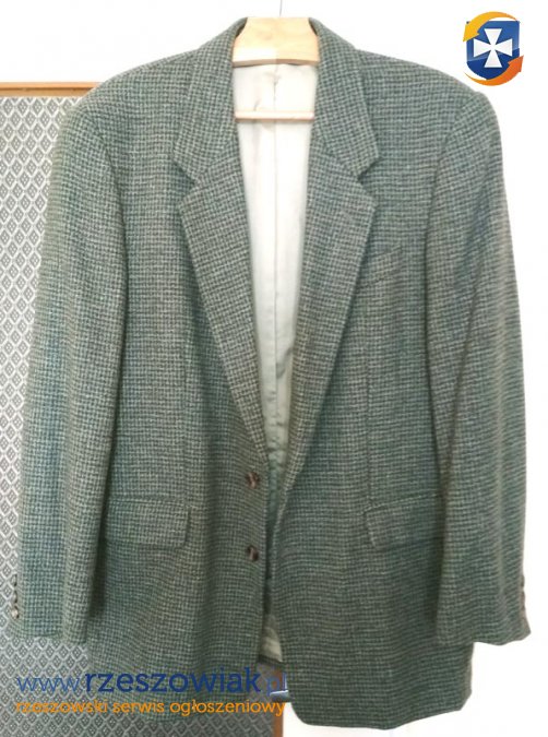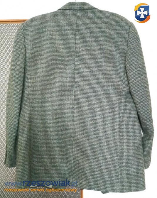 marynarka szaro-zielonkawa, materiał trochę grubszy od zwykłego, cieplejszy, wymiary: długość rękawa od zewnętrznej strony (od ramienia): 65cm , plecy (całe z kołnierzem): 82cm , szerokość w ramionach na płasko: 53cm, szerokość w pasie (na płasko): 55cm, stan bardzo dobry, bez uszkodzeń i plam, sprzedam 15zł