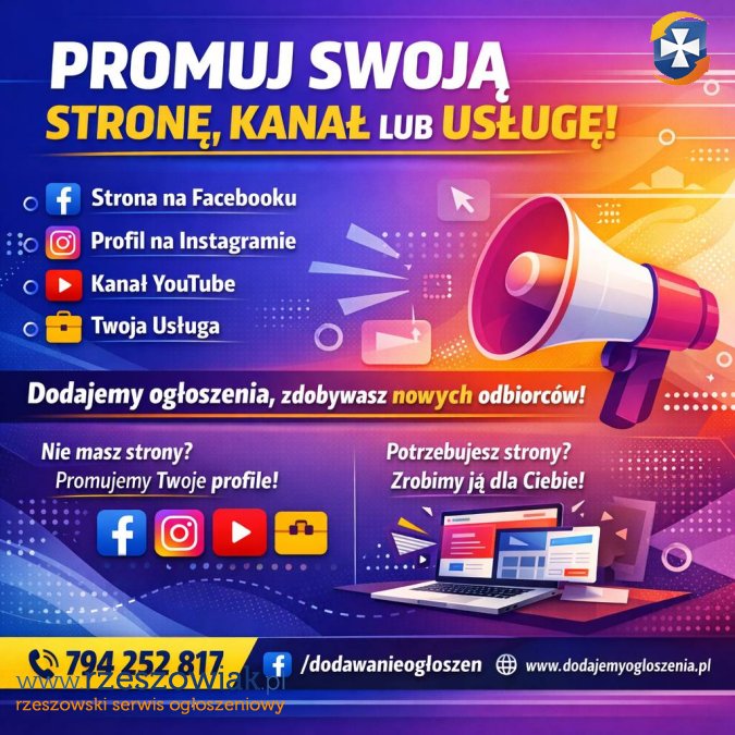 Masz stronę na Facebooku, profil na Instagramie, kanał na YouTube albo oferujesz jakąś usługę i chcesz, żeby więcej osób się o tym dowiedziało? Zajmujemy się profesjonalnym dodawaniem ogłoszeń w portalach internetowych, które pomagają zwiększyć widoczność w sieci i przyciągnąć nowych odbiorców.