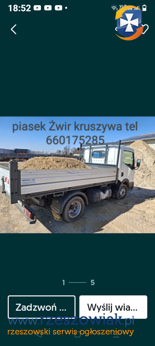 Materiały sypkie sprzedaż dostawa piasek kruszywa tel 660175285