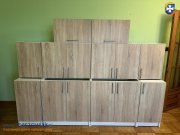 Meble kuchenne widoczne na pierwszym zdjęciu - szafki stojące i wiszące, fronty kolor dąb sonoma, bez blatów ( drugie zdjęcie to meble przed demontarzem dodane w celach demonstracyjnych )