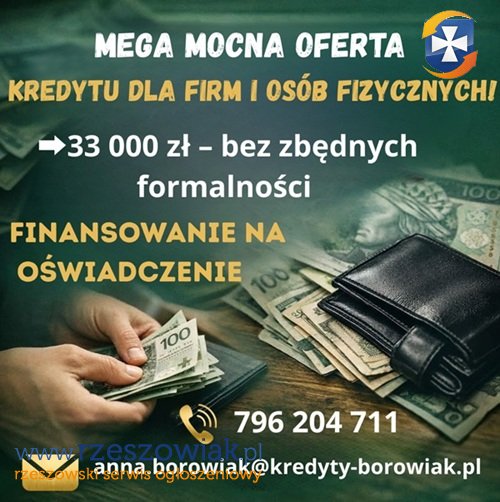 MEGA MOCNA OFERTA KREDYTU DLA FIRM I OSÓB FIZYCZNYCH NA OŚWIADCZENIE!