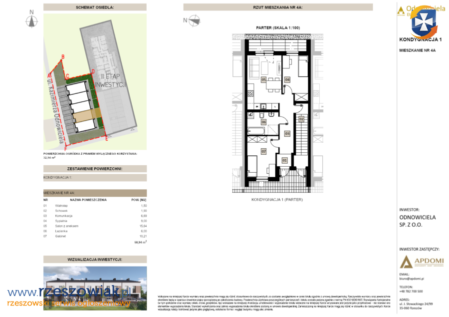 Mieszkanie o pow. 50,94 m2 usytuowane na parterze z ogródkiem o pow. 32,82 m2 w nowej inwestycji przy ul. Kazimierza Odnowiciela w Rzeszowie.
