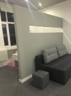 Duży pokój z wydzieloną sypialnią, kuchnia, mała łazienka.