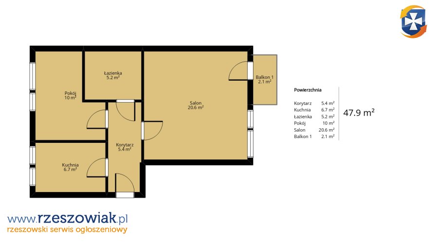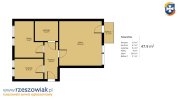 Mieszkanie o powierzchni 50m, 2 niezależne pokoje z balkonem, kuchnia jasna odrębna, łazienka.