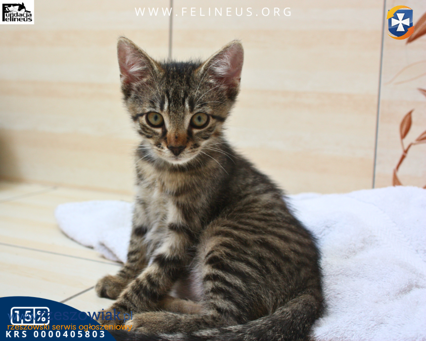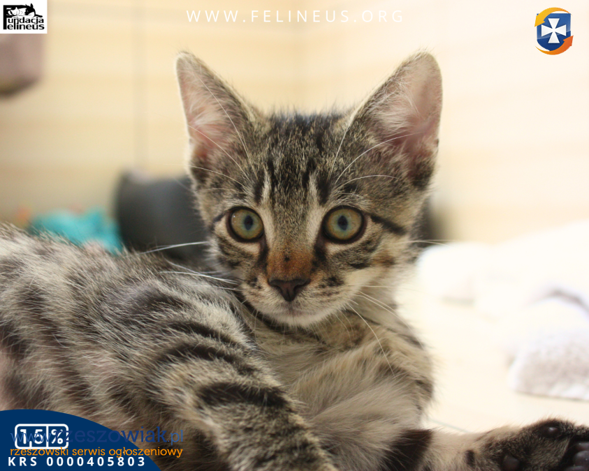 Mleczyk - kocurek urodzony w czerwcu 2025. Mleczyk to kociak o najcudowniejszym na świecie charakterze. Kocha ludzi bardzo, najchętniej nie schodziłby z kolan ani z rąk. Na sam widok człowieka biegnie aby się poprzytulać, głośno przy tym mrucząc. Mleczyka nie da się nie kochać. To chodząca kulka szczęścia i radości. Kocurek doskonale dogaduje się z innymi kotami, dlatego świetnie by było gdyby znalazł dom z kocim towarzystwem lub został adoptowany z bratem Wrzosikiem i/lub siostrą Paprotką. Mleczyk szuka domu niewychodzącego z zabezpieczonymi oknami i jeśli jest to balkonem.
