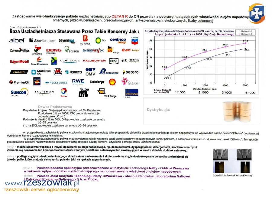 Koncentrat powszechnie stosowany na wszystkich stacjach benzynowych jako tzw. "Olej Napędowy Wzmocniony 55 cetanów"