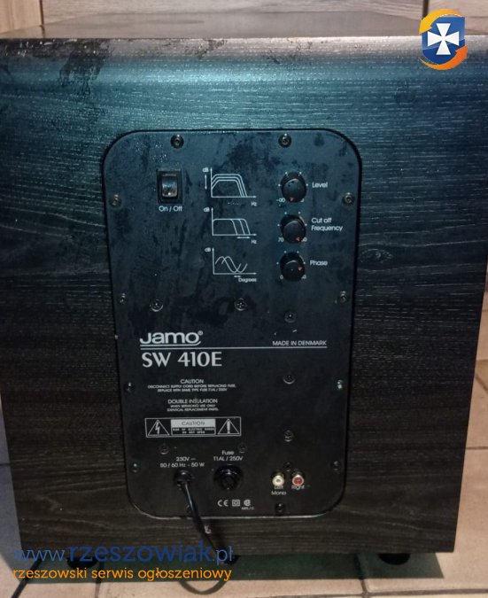 Mocny subwoofer aktywny Jamo SW 410E. Doskonałe rozszerzenie systemu audio o niskie tony. Idealny do domowego kina. Używany, w dobrym stanie.