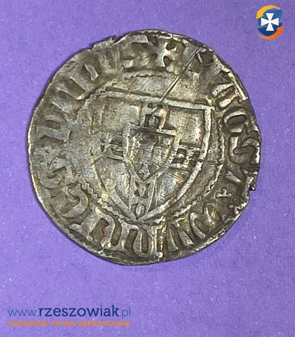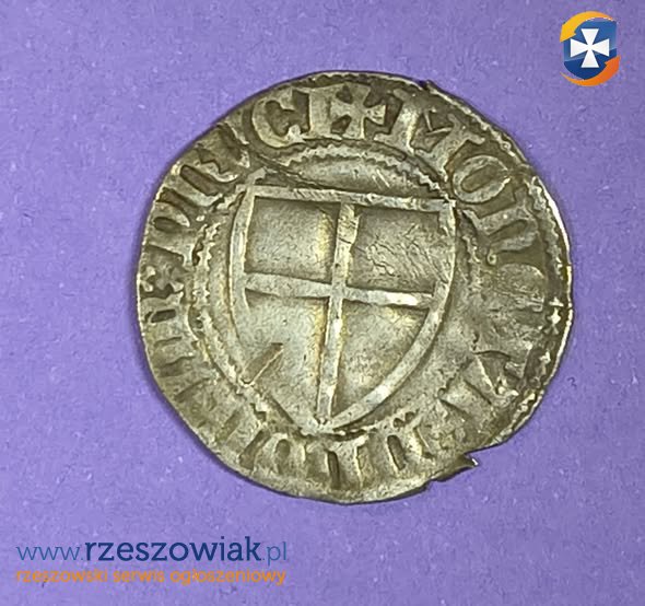 Moneta krzyżacka wybita w czasach panowania Wielkiego Mistrza Winrycha von Kniprode.