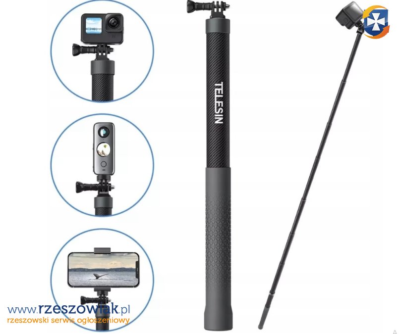 Ten wykonany z włókna węglowego teleskopowy selfie stick marki Telesin do kamer sportowych pozwoli Ci uchwycić świat z nowej, fascynującej perspektywy. Jego długość możesz regulować aż do 3 m, dzięki czemu stworzysz mnóstwo ciekawych ujęć.